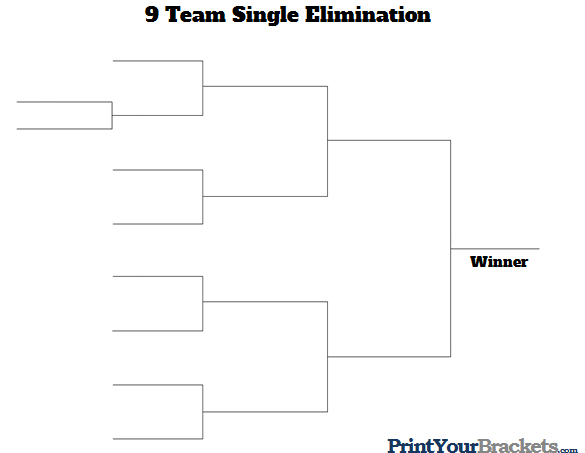 | Play: 9 Team Single Elimination Printable Tournament Bracket |